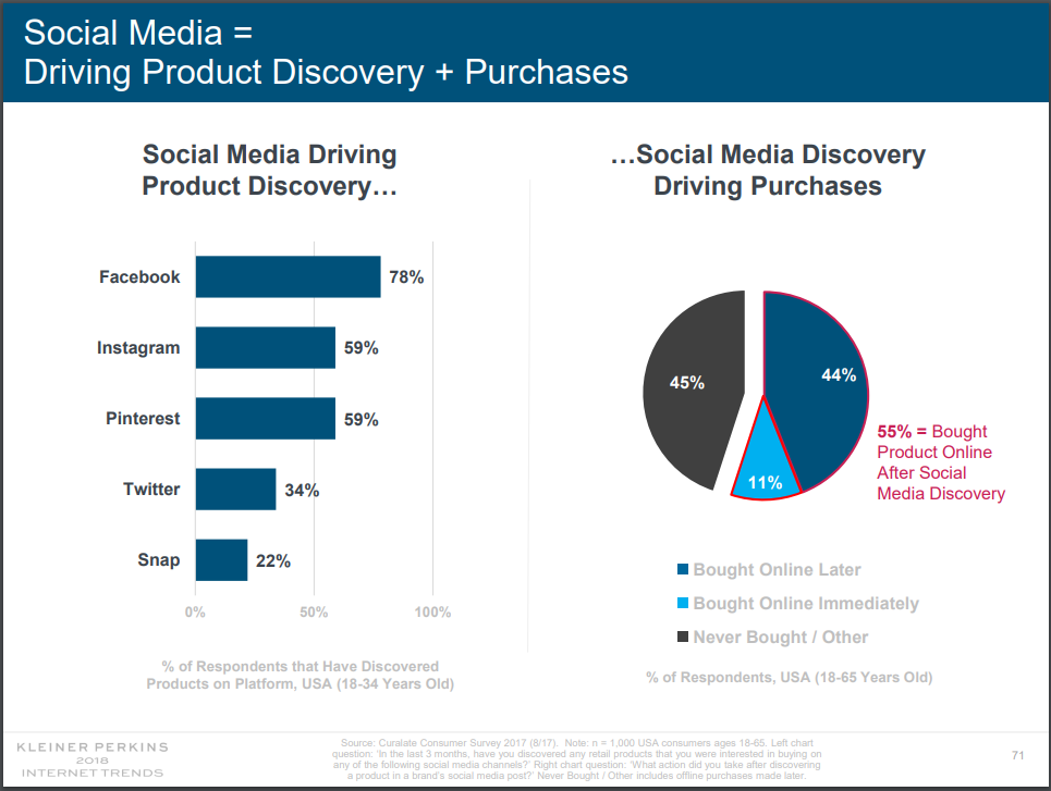 - After discovering a product on social media, 55% of shoppers bought a product online.
